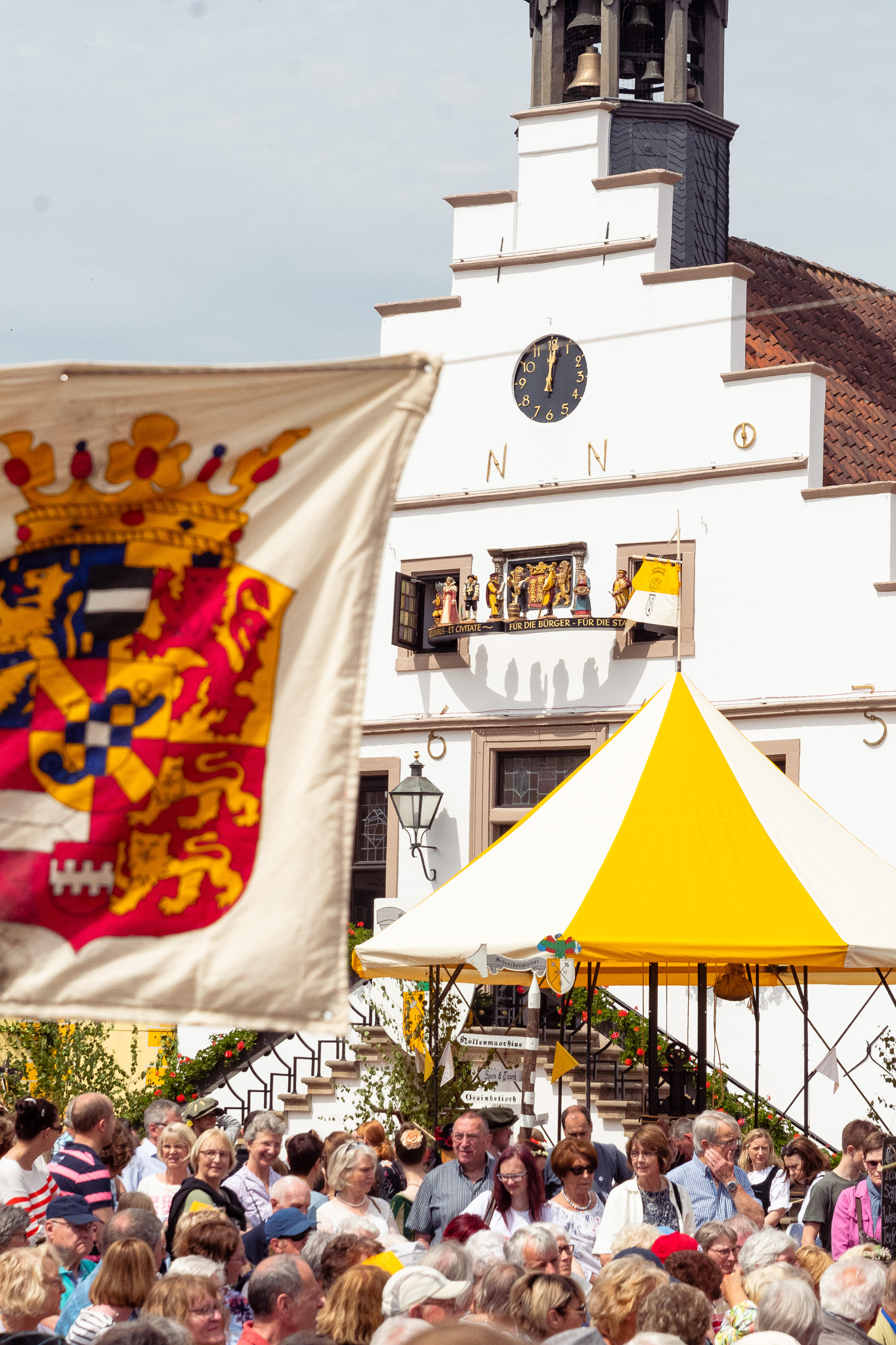 Der »Hochwohl-geborenen Tisch« ~ herzlich willkommen am zentralen Ort des Marktplatzes! Massiv und anmutig inmitten der Brunnen-Estrade, ein idealer Blick über das Geschehen beim Volksfest ist garantiert.